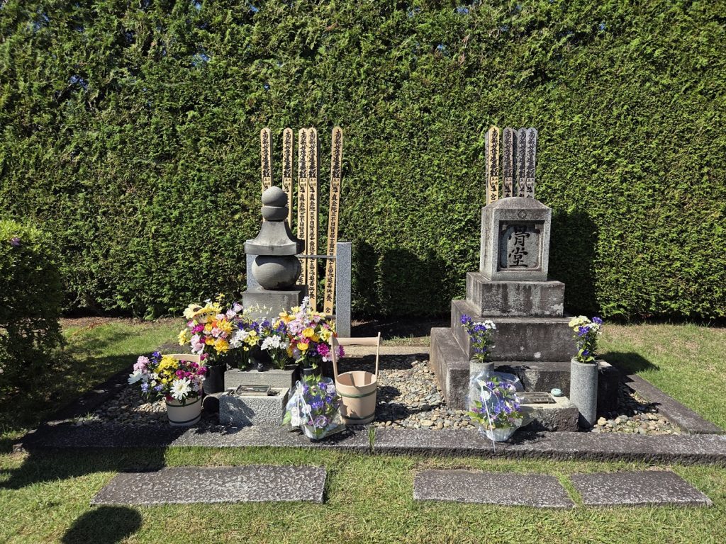 本堂の裏手に回ると賢治さんのお墓へ行くことができます。↓