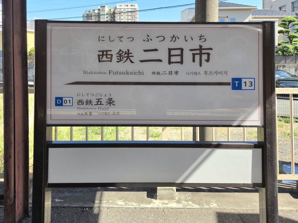 福岡(天神)駅から西鉄に乗って西鉄二日市駅で乗り換えます。↓
