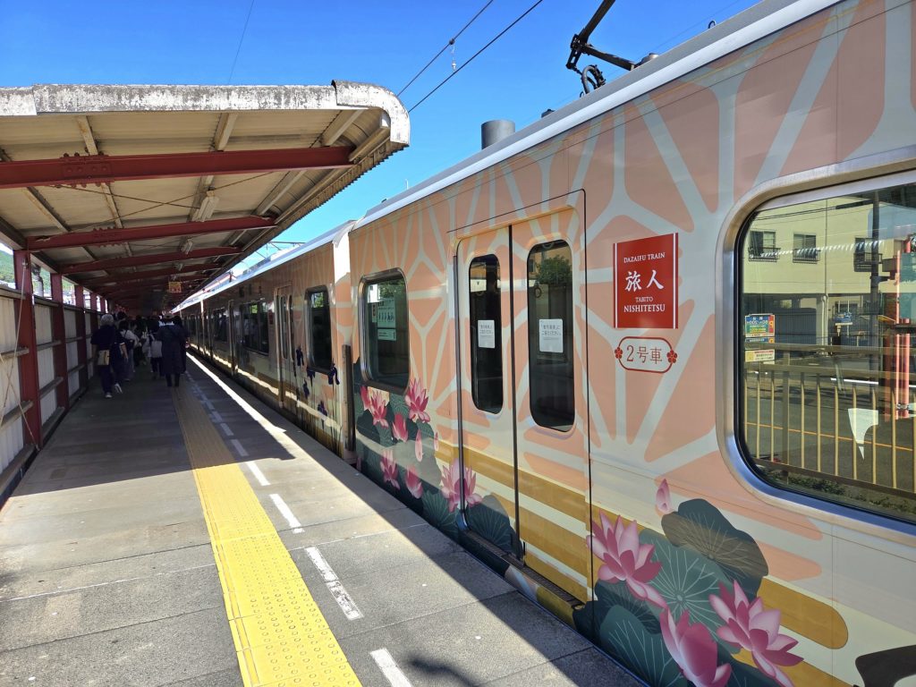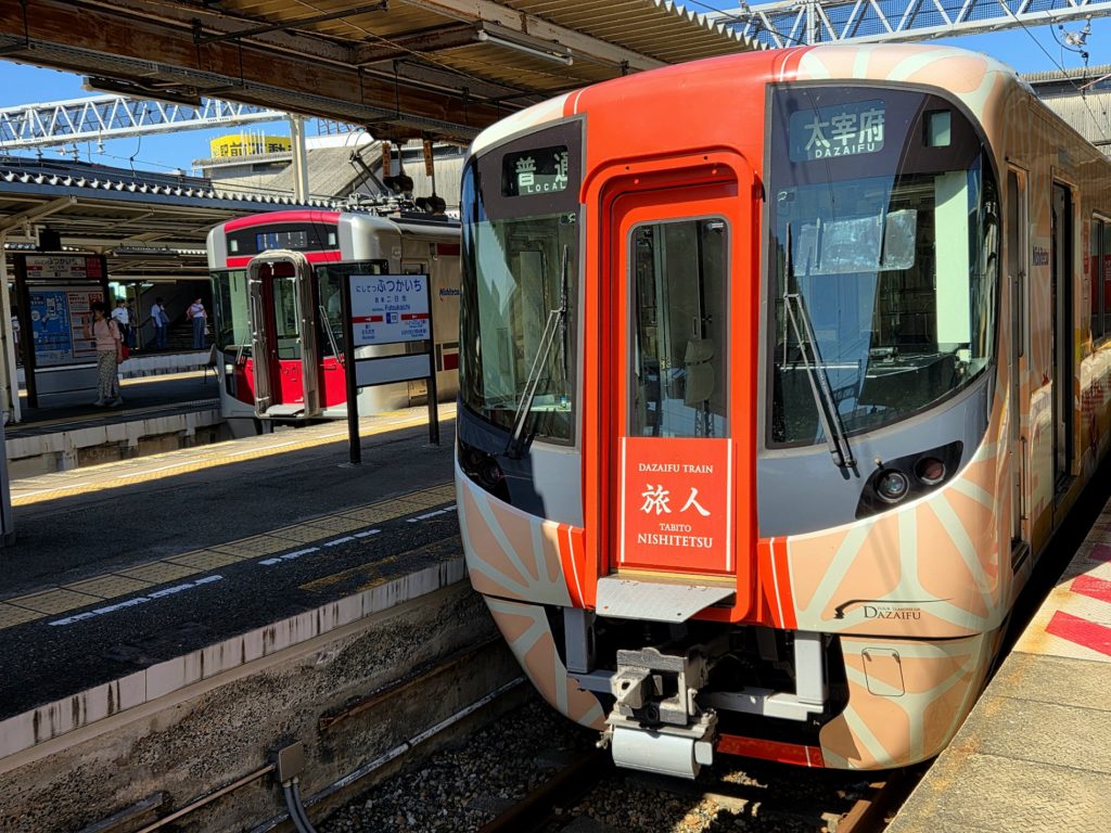 二日市駅からは太宰府駅行き専用列車旅人(たびと)に乗車!↓