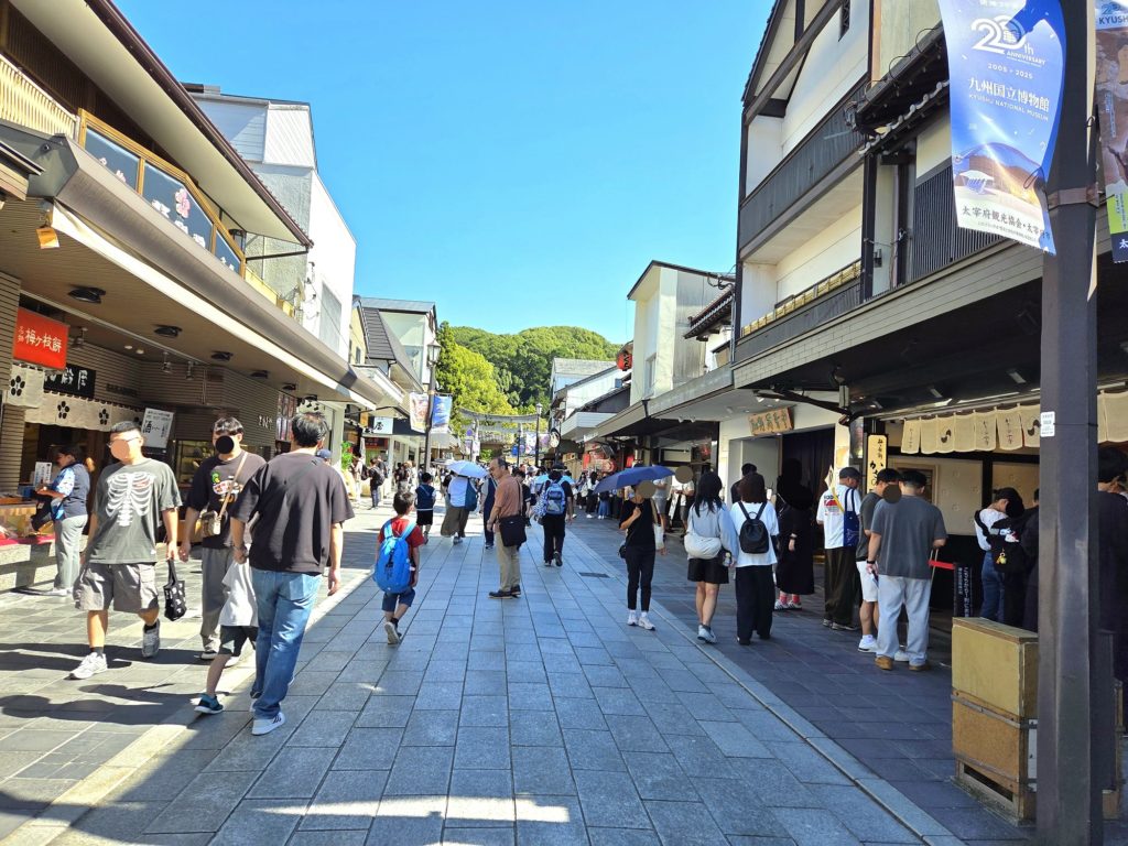 名物梅ヶ枝餅のお店が立ち並ぶ華やかな参道