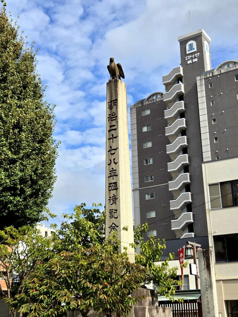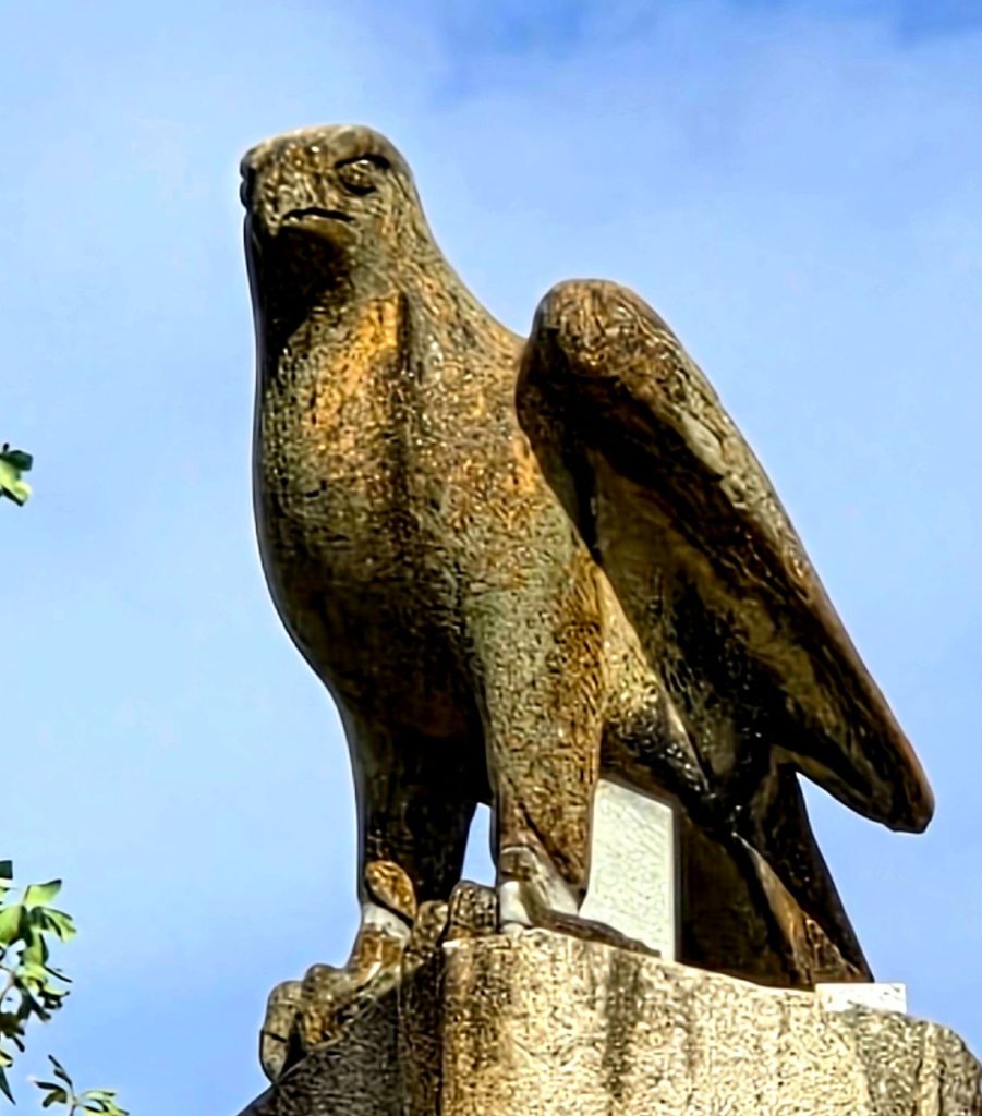 さらに参道を進むと、左手に鷹の石像があり、