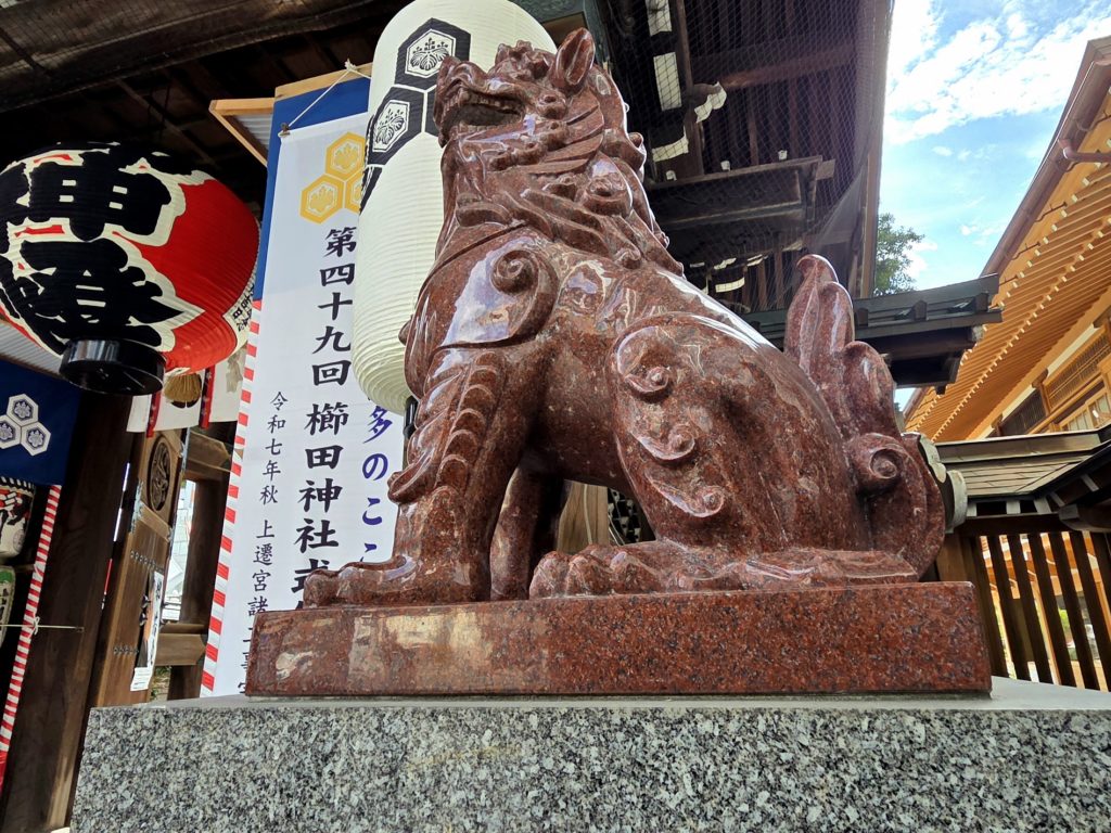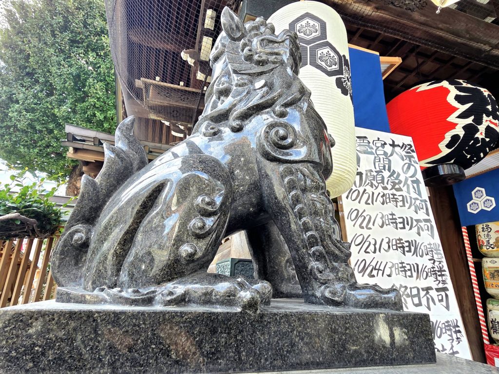 楼門の狛犬は前足がシュッと長く、カッコいい!